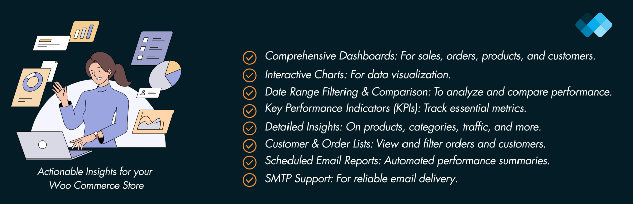 Get a quick overview of your WooCommerce store’s performance with Dashboard and Analytics for WooCommerce.