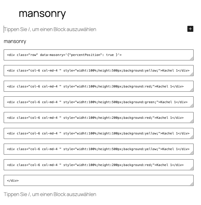 Gutenberg-Grid in ein Masonry-Muster darstellen