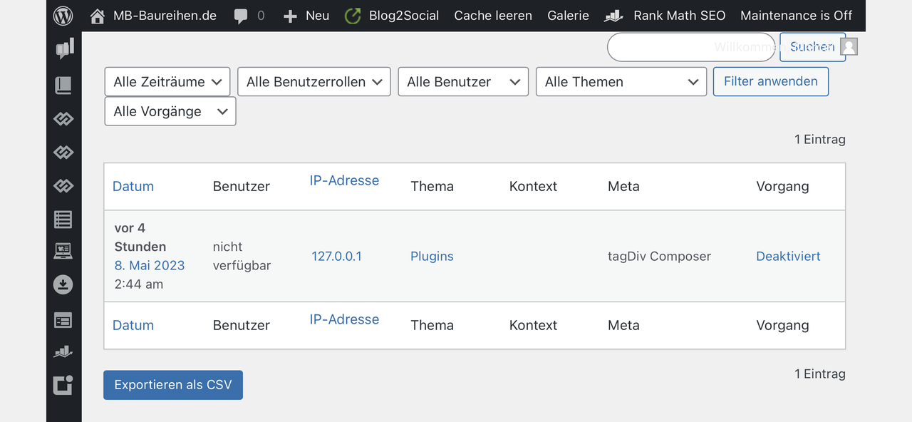 Welches Plugin? Wieso ich es nicht nenne? Das Plugin ist oben im Screenshot ersichtlich und heißt tagDiv Composer vom gleichnamigen Entwickler TagDIV. An den Entwickler hatte ich mich direkt zu Anfang gewandt mit der Antwort, dass in den Plugins nichts sein könne was das automatische Deaktivieren auslösen könne – daher mein Posting hier.