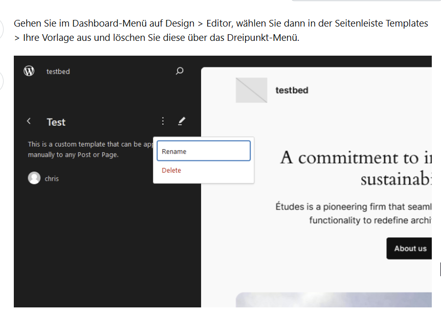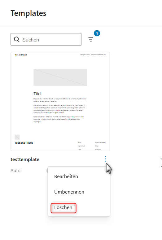 im Editor unter „Alle Templates“ bin ich selber als Autor aller Dateien genannt. Dort gibt es z.B die Templates „test“ und „testaeite“ die mit Sicherheit mal von mir zum testen angelegt wurden … die ich aber gerne löschen möchte.