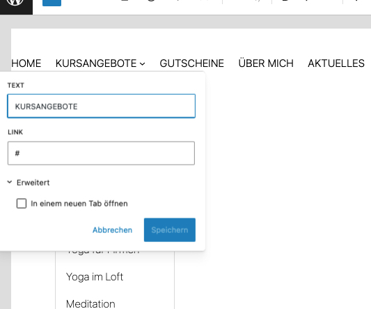 Als Antwort auf: Startseite als Template oder SeiteDie Seite existiert gar nicht, sondern hat als Link einen # https://axelyoga.de/wp-content/uploads/2025/10/link.jpg